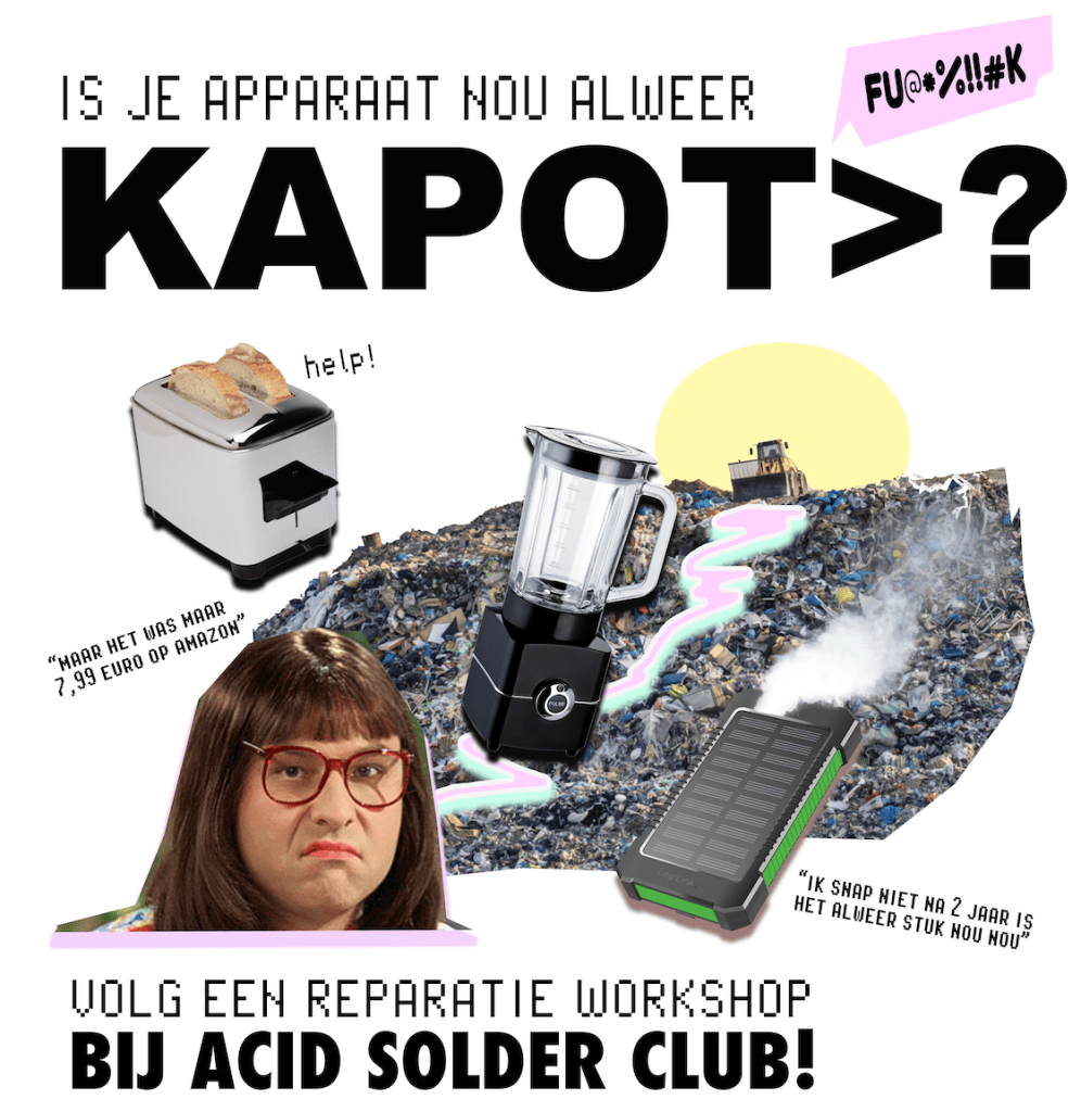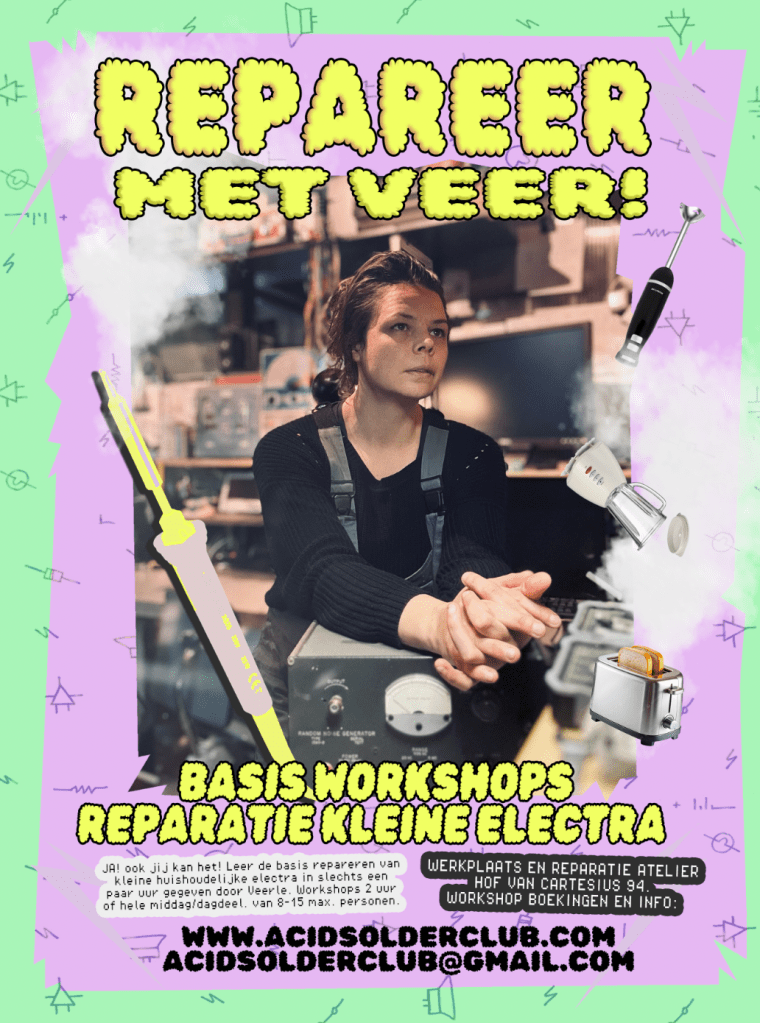 Mocht je interesse hebben in een reparatie workshop op maat voor je team of familie, stuur een mailtje naar acidsolderclub@gmail.com. Dit is mogelijk om te combineren met andere activiteiten op het Hof van Cartesius zoals een naborrel of post-repair snack bij Warmoes!