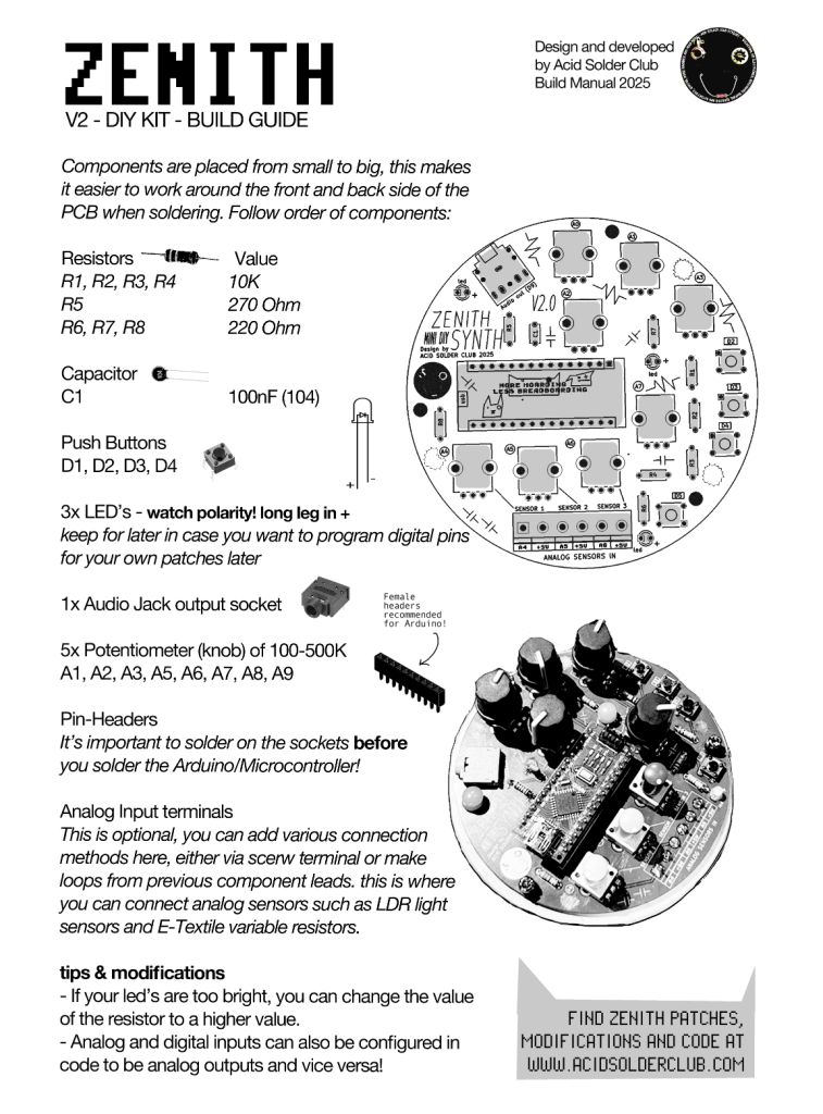 Acid Solder Club’s ZENITH is a standalone diy synthesiser that eliminates the drag and hassle of breadboarding for beginners, who are eager and hyped to solder, design and code their first synth!
